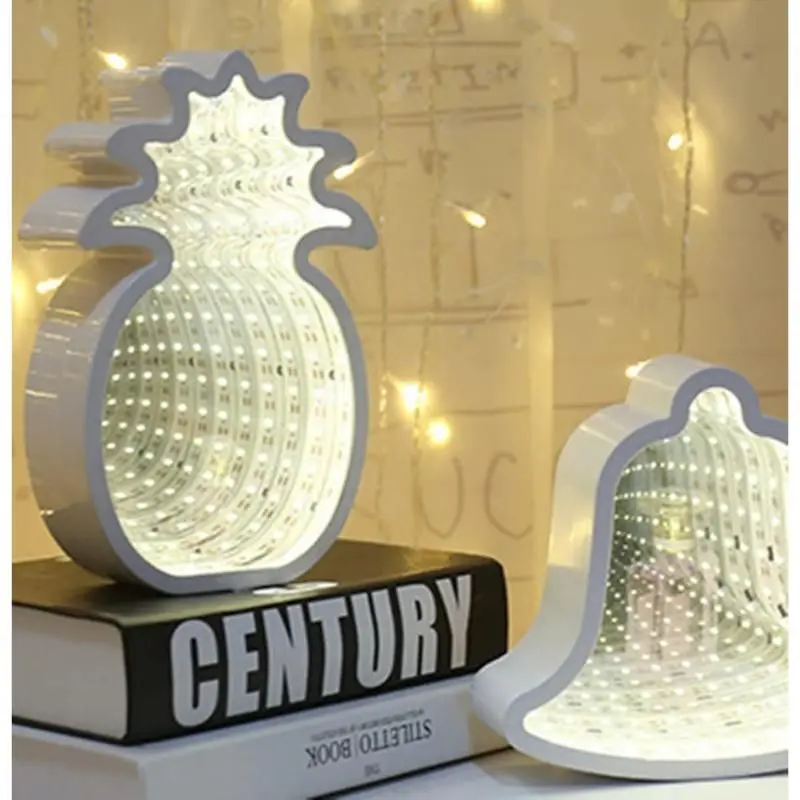 Lampara led blanca con forma de ananá. Espejada genera un efecto infinito.